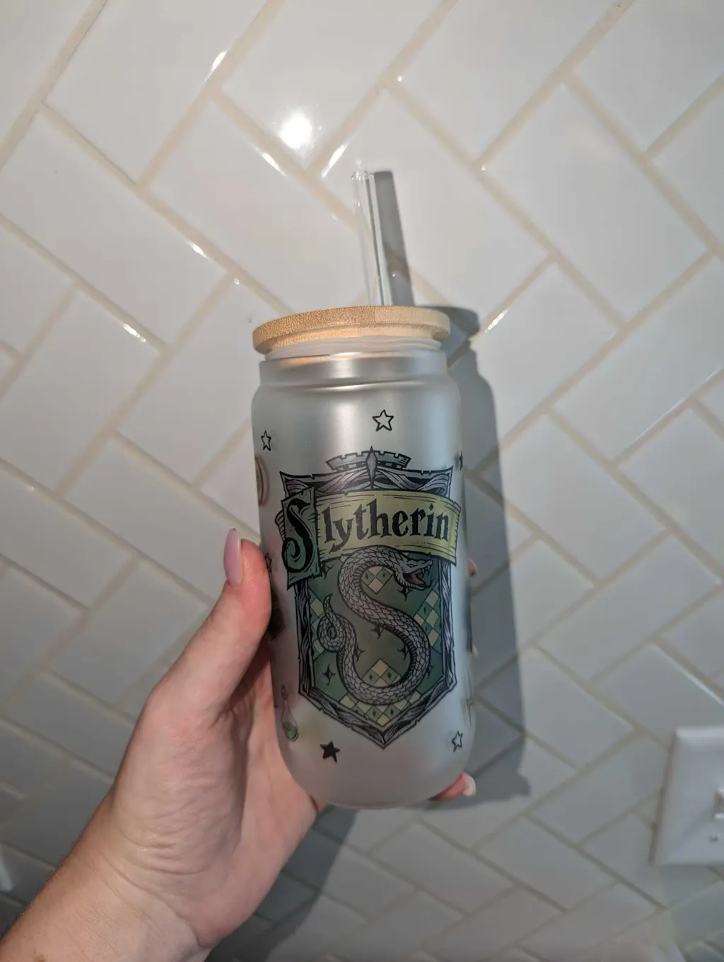 16oz Frosted Glass Slytherin Tumbler